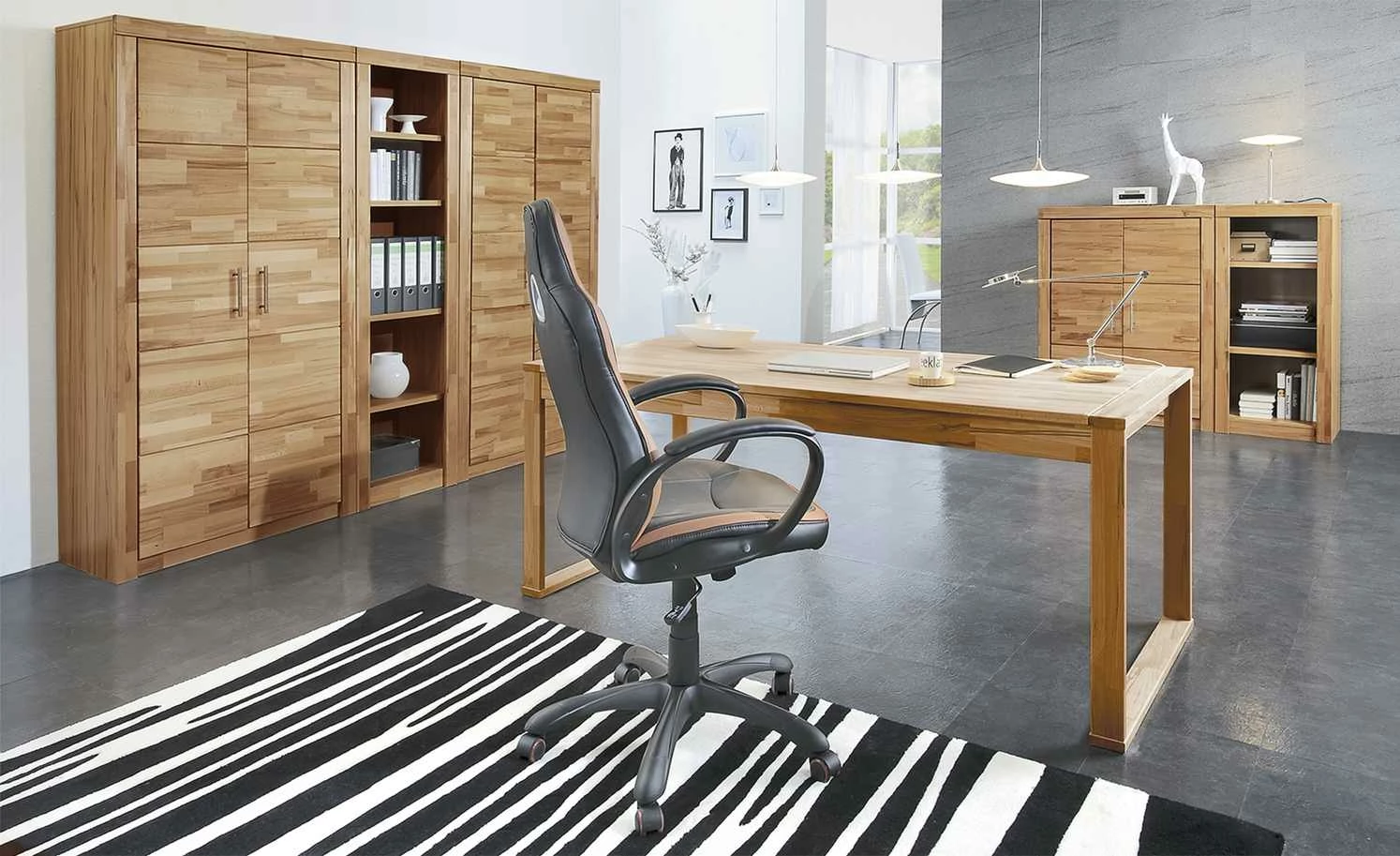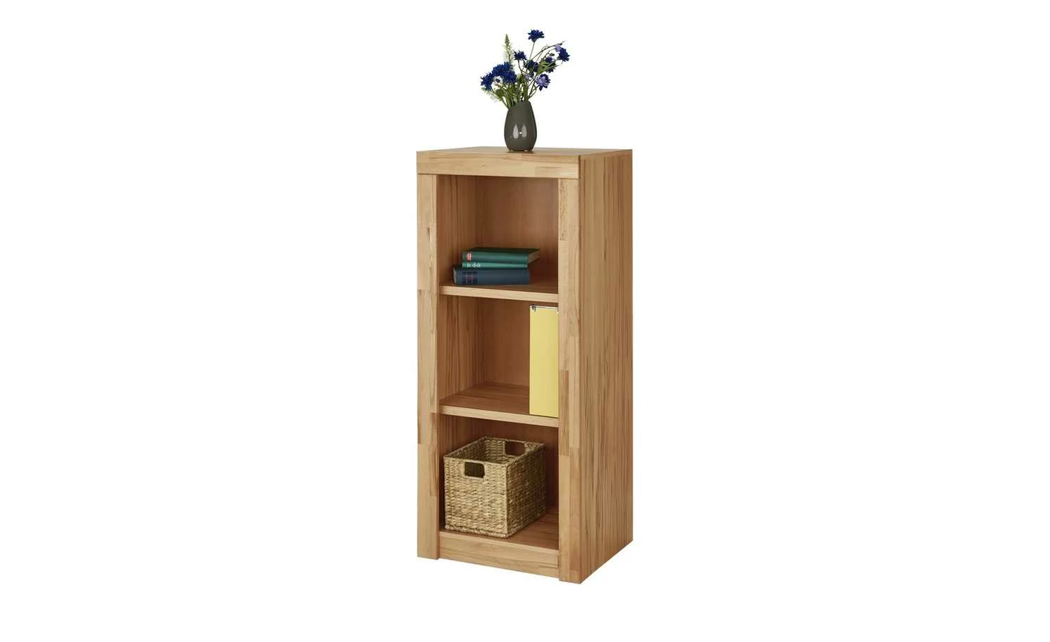 Für Akten, Ordner und anderes Büromaterial ist das Aktenregal Oslo ideal. Es verfügt über drei geräumige Fächer. Da die Böden höhenverstellbar sind, können Sie den Stauraum individuell anpassen. Mit seiner hellen Holzoptik in Kernbuche (Nachbildung) und der deutlich erkennbaren Maserung passt Oslo gut zu anderen Holzmöbeln, aber auch zu Weiß oder Grau. Die schlichte, kantige Form unterstreicht die Zweckmäßigkeit des Regals. An der Vorderseite befindet sich ein formschöner Rahmen, der aus Massivholz ist. Dabei wurde Kernbuche verwendet, um den einheitlichen Stil zu behalten.