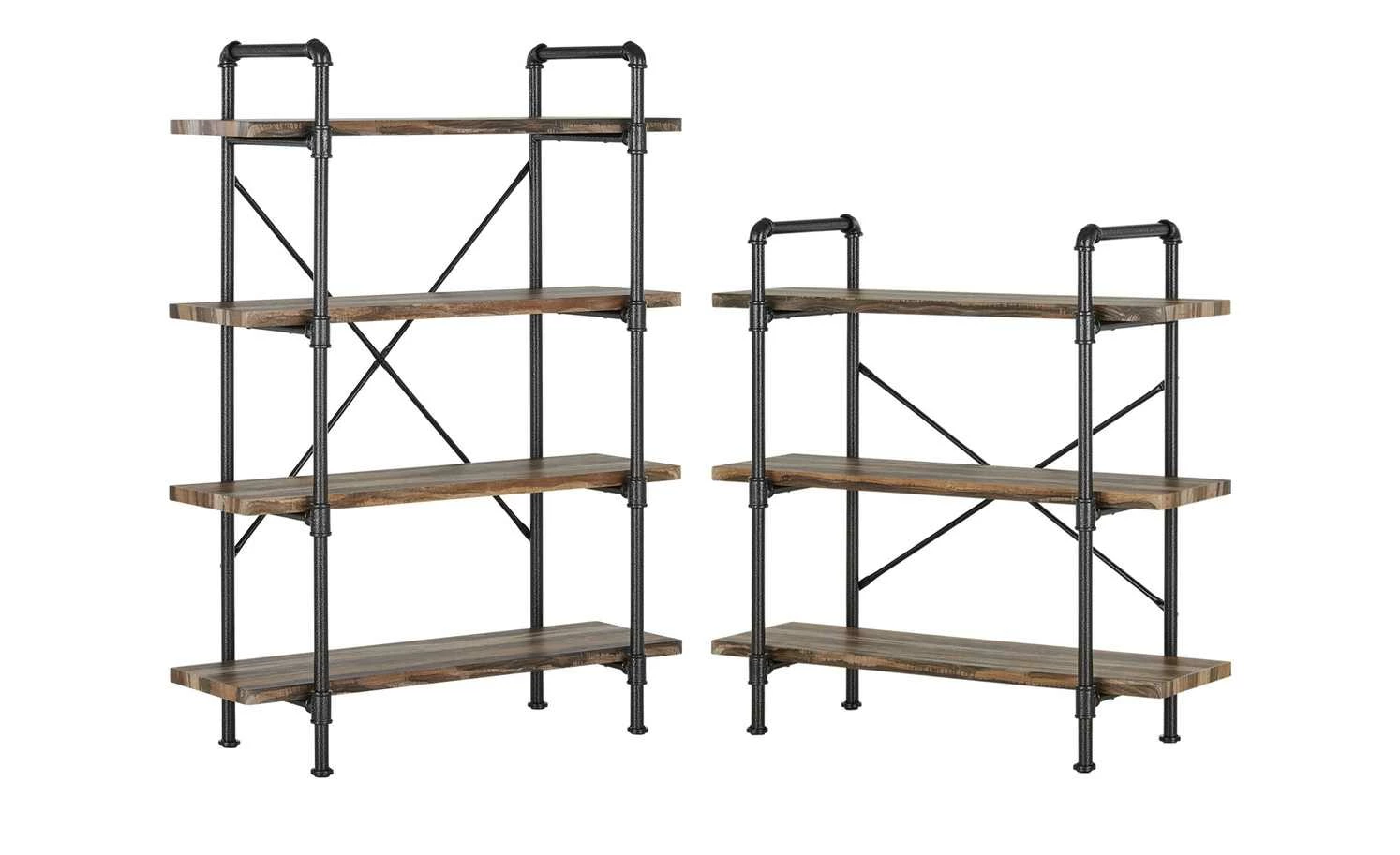 Das Regal Casoro ist ein Eyecatcher im Industrial-Look. Vor allem das Metallgestell fällt auf, denn es erinnert an alte Wasserrohre. Passend dazu ist auch die Farbe in Antikschwarz gewählt, die alt und abgenutzt wirkt. Die Regalböden haben eine Optik in verwitterter Eiche (Nachbildung), wodurch sie wunderbar zum Gesamtdesign passen. Casoro ist mit drei Böden ausgestattet, die sie vielseitig nutzen können. Stellen Sie darauf Bücher, Ordner oder Geschirr ab – Sie haben die Wahl.