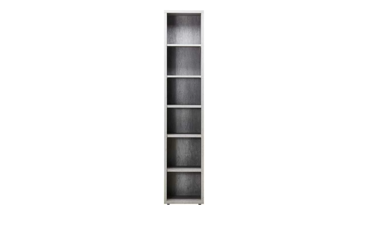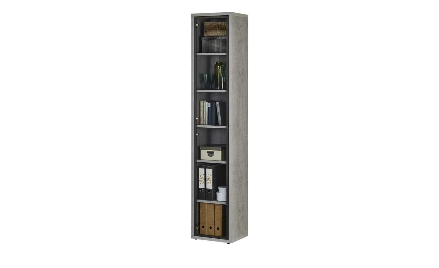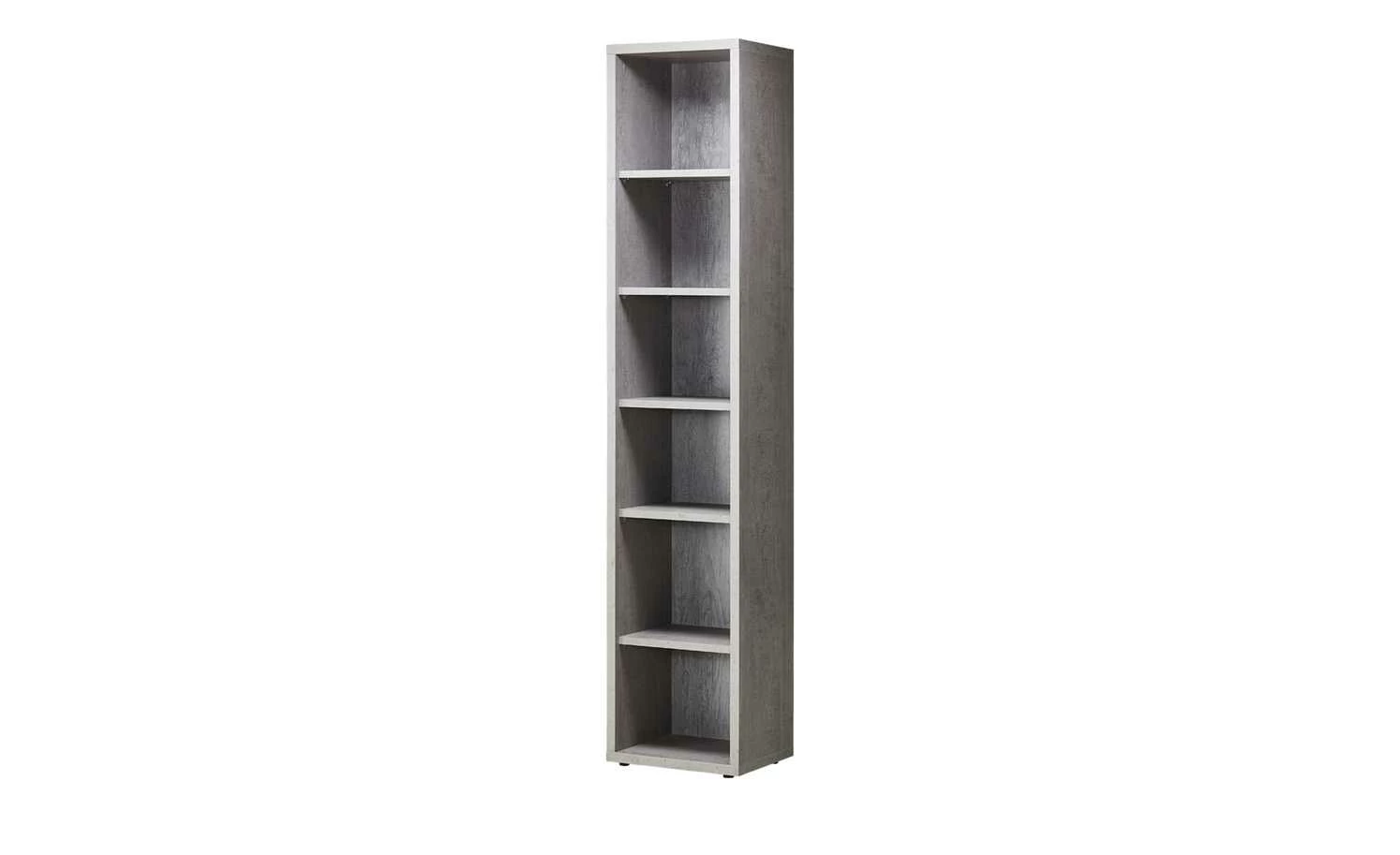 Durch die schmale und hohe Formgebung benötigt das Regal Donau wenig Stellfläche. Dennoch bietet es Ihnen viel Platz. Das Regal hat nämlich sechs Fächer für Ordner und andere Dinge, die Sie im Büro benötigen. Donau ist mit einer Melaminbeschichtung versehen. Dadurch ist die Oberfläche strapazierfähig. Die Kanten werden durch die ABS-Beschichtung vor Abnutzung geschützt. Die Betonoptik in Grau lässt das Regal schlicht und modern zugleich aussehen.