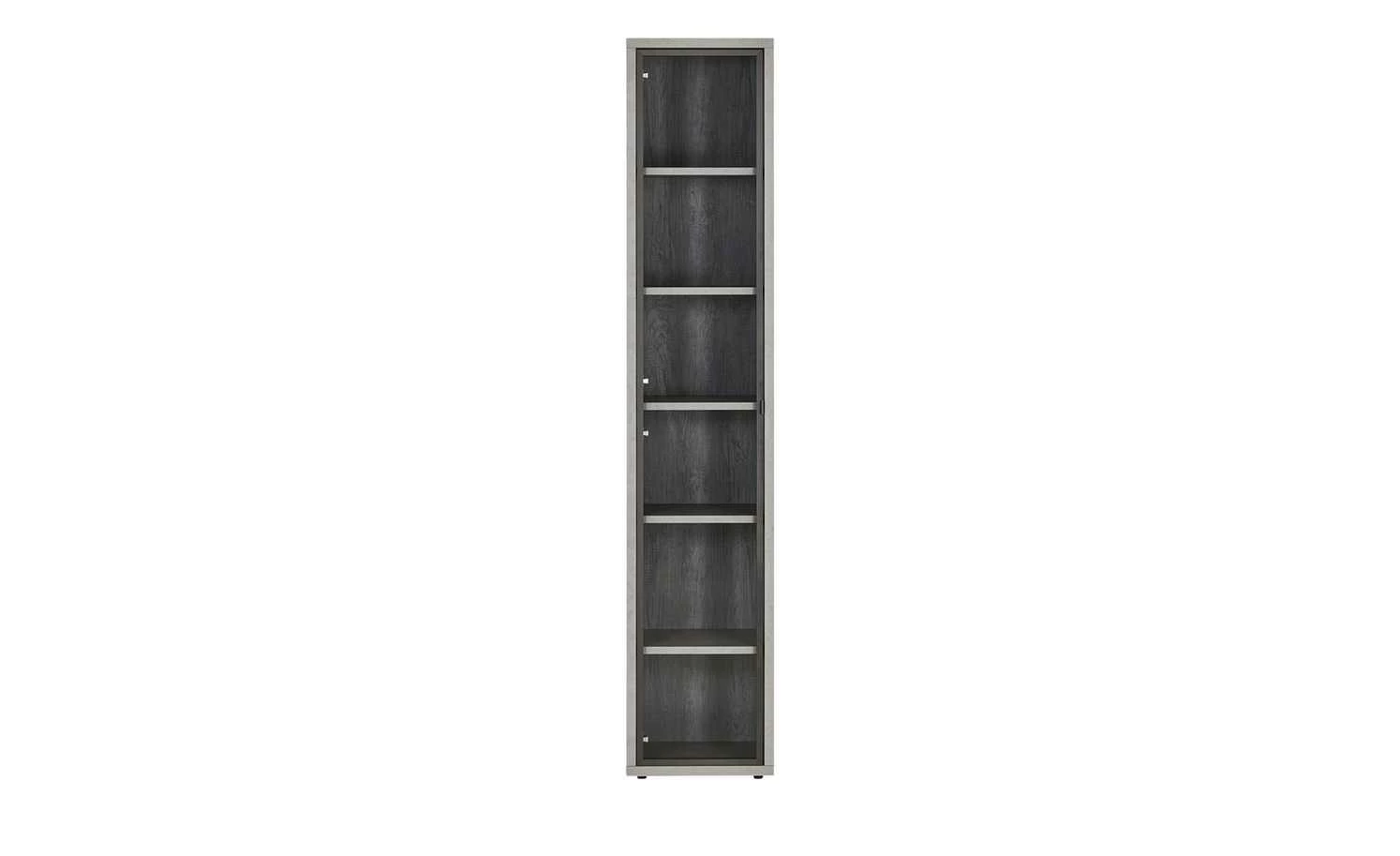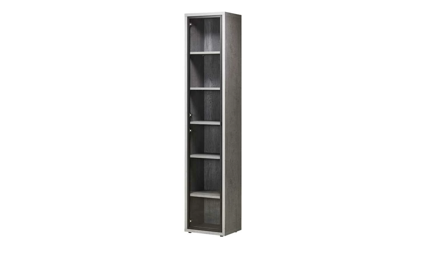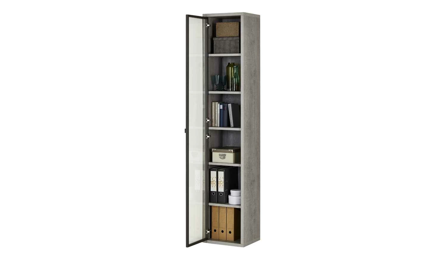 Durch die schmale und hohe Formgebung benötigt das Regal Donau wenig Stellfläche. Dennoch bietet es Ihnen viel Platz. Das Regal hat nämlich sechs Fächer für Ordner und andere Dinge, die Sie im Büro benötigen. Donau ist mit einer Melaminbeschichtung versehen. Dadurch ist die Oberfläche strapazierfähig. Die Kanten werden durch die ABS-Beschichtung vor Abnutzung geschützt. Die Betonoptik in Grau lässt das Regal schlicht und modern zugleich aussehen.