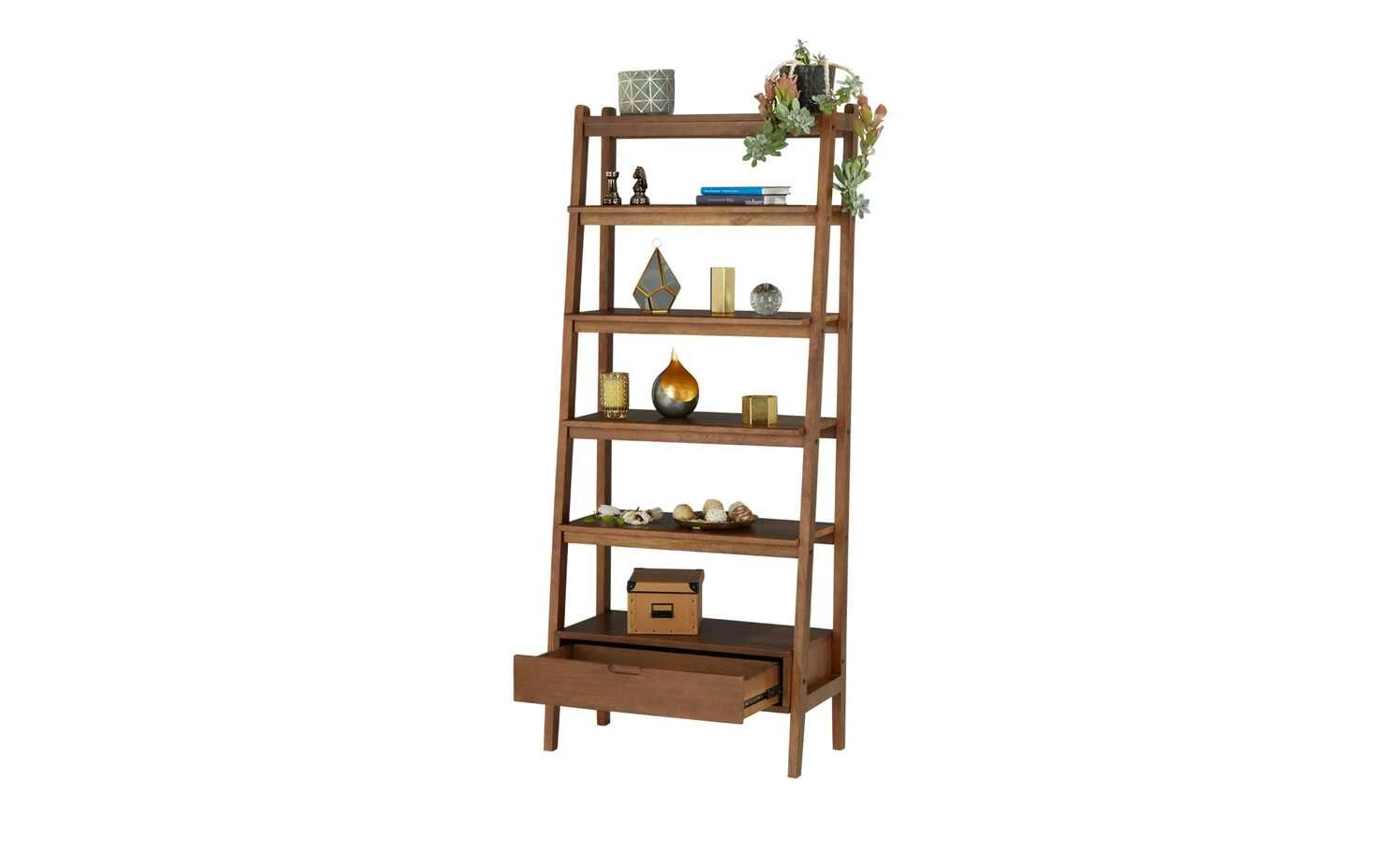 Die Serie Tweed Me entführt Sie in längst vergangene Zeiten und bringt Wiener Eleganz in Ihre vier Wände. So auch dieses Regal aus schön gemasertem Mangoholz. Das insgesamt 190 Zentimeter hohe Regal besitzt fünf unterschiedlich große Böden, auf denen Sie Bücher, Blumentöpfe oder Dekoration platzieren können. Ein integriertes Schubfach stellt Ihnen blickdichten Stauraum zur Verfügung und erweitert das Regal um eine weitere Ablagefläche. Ob im Wohn-, oder Arbeitszimmer: Das Regal Tweed Me macht in zahlreichen Raumkonzepten eine gute Figur.