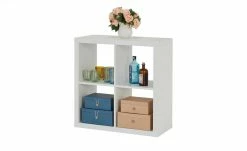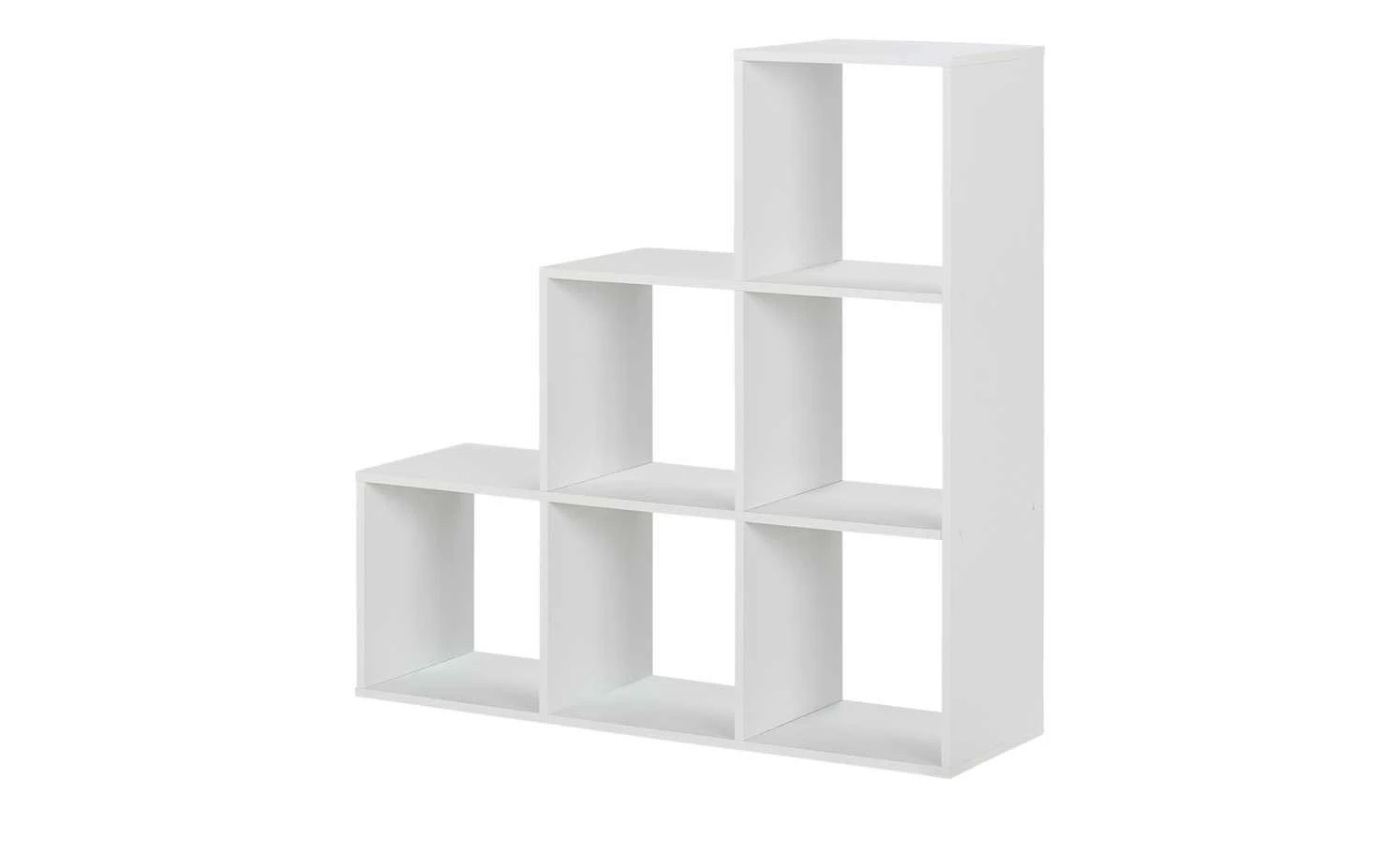Das Regal Ursini ist stufenförmig angeordnet. Das geometische Design wird durch ein zeitloses strahlendes Weiß akzentuiert. Sie können Ursini direkt vor eine Wand stellen; oder Sie nutzen es als Raumteiler. Besonders praktisch in Einraumwohnungen oder um Räume in verschiedene Bereiche zu unterteilen. Das Regal bietet sechs geräumige Fächer, die auch mit Ordnungsboxen ergänzt werden können.