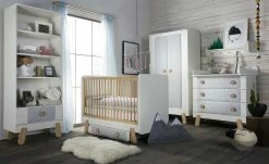 Mit seinen vier Fächern ist das Standregal Irma perfekt für Kinderbücher oder Spielzeug. Es kann aber auch gut mit Ordnungsboxen ergänzt werden. Zusätzlich zu den Fächern hat es eine Schublade mit Soft-Close im unteren Bereich. Irmas weiße Oberflächen sind melaminbeschichtet und deshalb kratzerunempfindlich. Griffe und Füße setzen sich ab, sie bestehen aus massiver Buche.