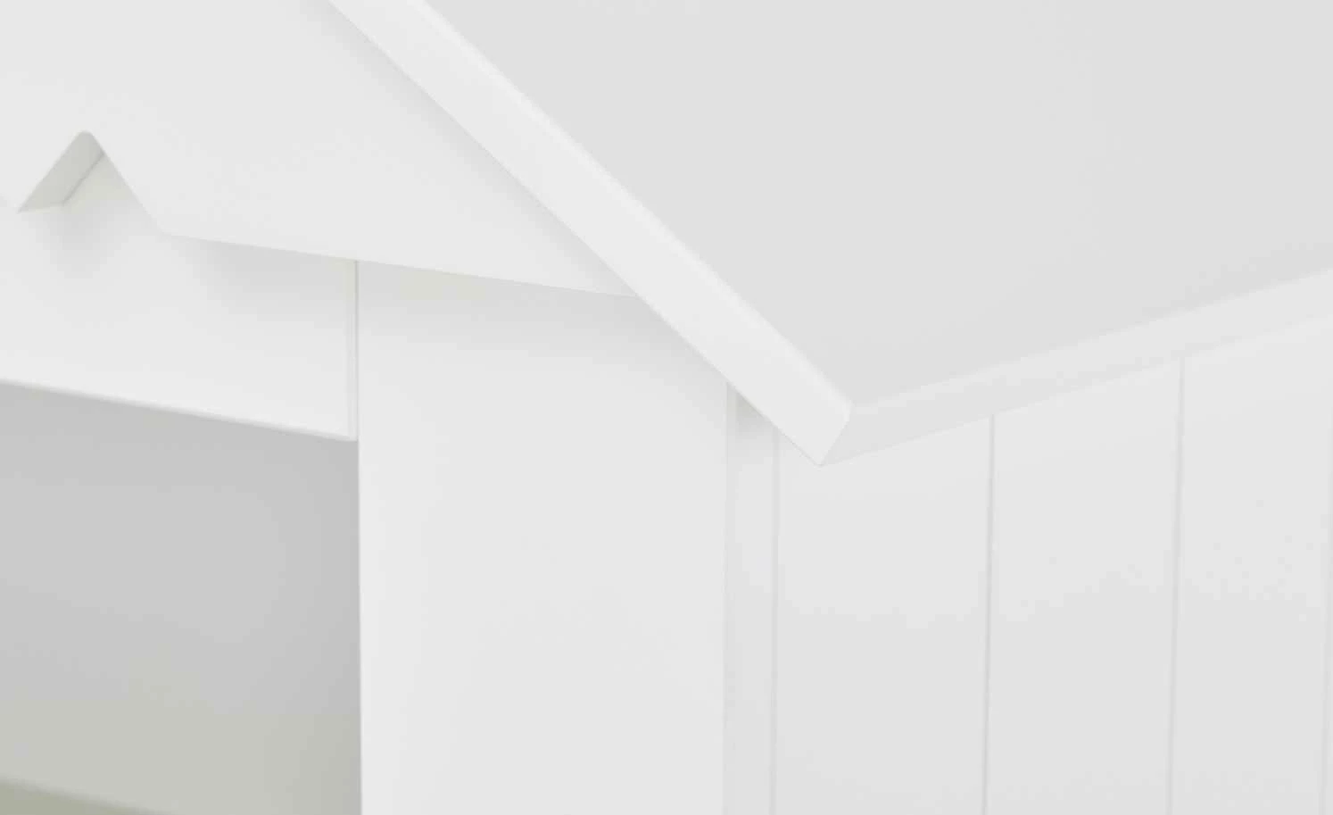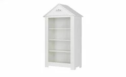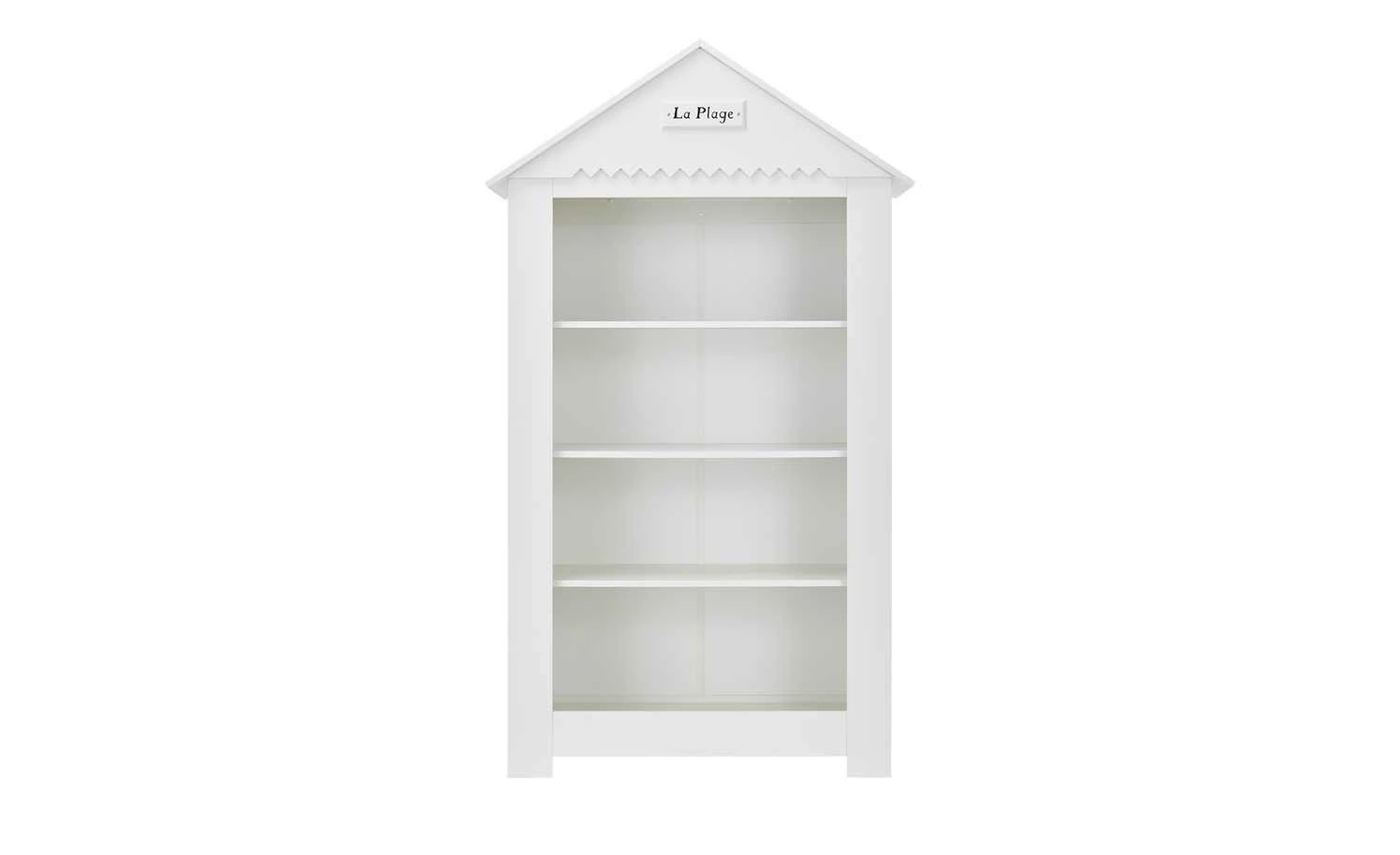 Beim Standregal Mara passt alles: Design, Stauraum und Qualität. Mara erinnert an eine Holzhütte am Strand. Es gibt sogar ein Dach mit einem „La Plage“ Schriftzug am Dachgiebel. Die Oberflächen sind weiß lackiert und haben eine Holzlattenoptik. Stauraum für Kinderbücher, Teddy und Puppe ist in den vier Regalfächern. Sie erstrecken sich über die gesamte Regalbreite von rund 107 Zentimetern.