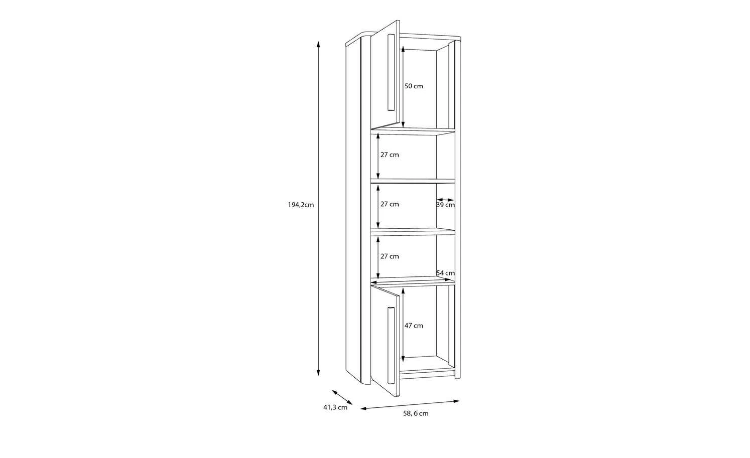 - Gesamtbreite: 58,6 cm
