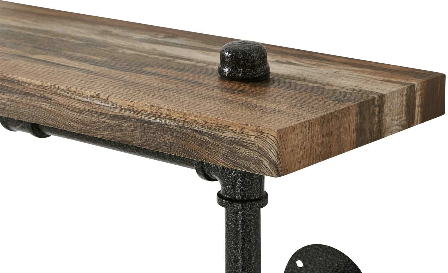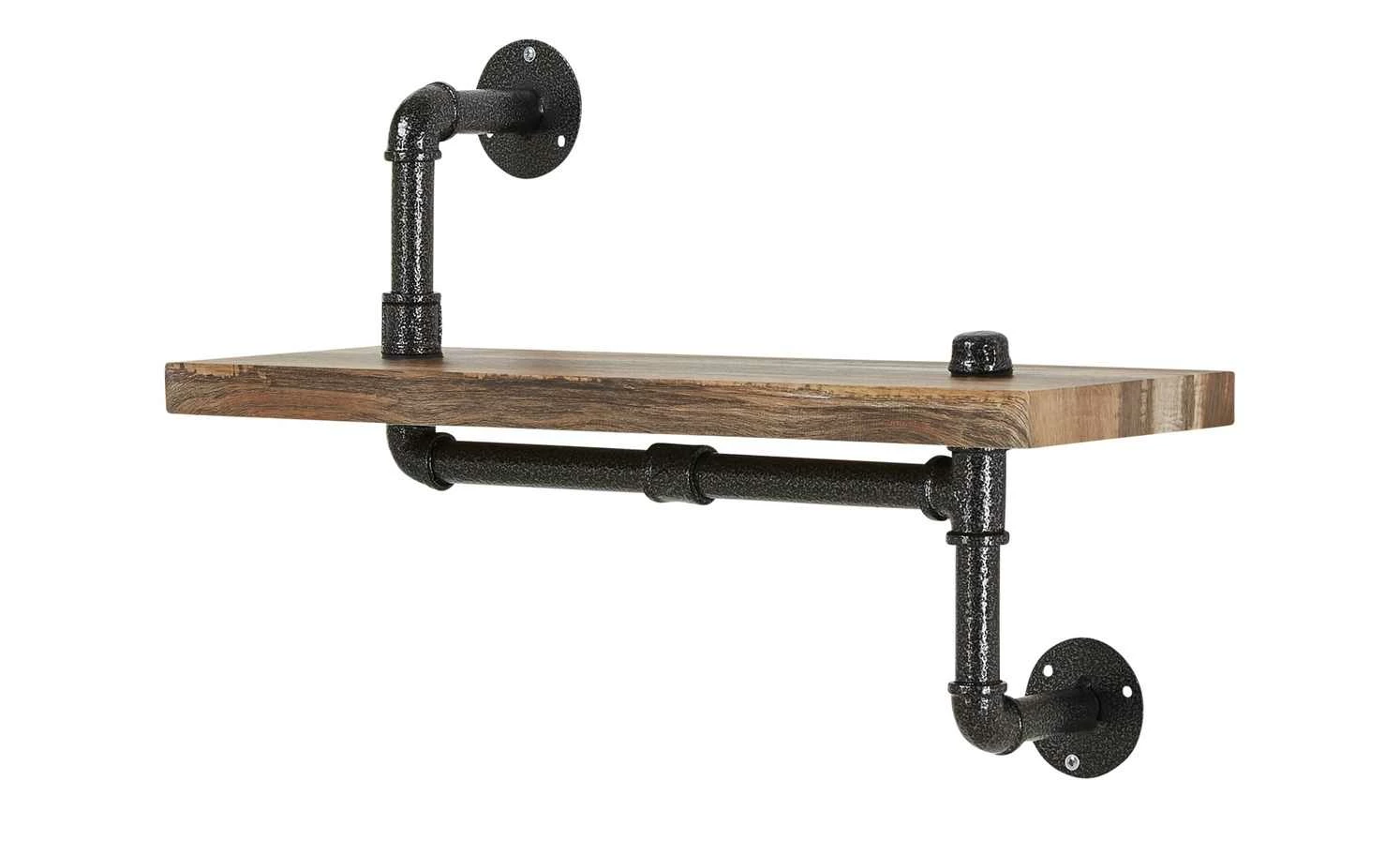 Das Wandregal Casoro ist ein Eyecatcher. Nutzen Sie es als stylischen Stellplatz für Geschirr oder im Wohnraum für Bücher. Das Regal fällt vor allem durch sein Gestell aus. Es ist aus Metall und im Look alter Wasserrohre designt. Um das außergewöhnliche Aussehen noch besser hervorzuheben, sind die Rohre in Antikschwarz lackiert und haben Used-Effekte. Auch der Regalboden sieht Vintage aus. Er hat ein Dekor in Eiche verwittert (Nachbildung).